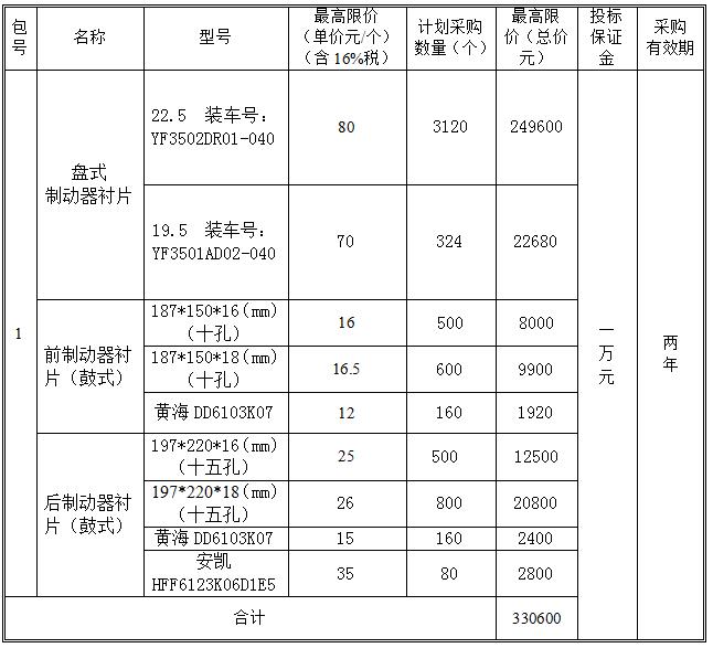 (1)車(chē)用制動(dòng)器襯片的技術(shù)參數(shù)要求按《GB5763-2008汽車(chē)用制動(dòng)器襯片》執(zhí)行; (2)帶緩速器的鼓式制動(dòng)器襯片行駛里程應(yīng)大于6萬(wàn)公里,盤(pán)式制動(dòng)器襯片應(yīng)大于6萬(wàn)公里。 (3)投標(biāo)人須提供投標(biāo)產(chǎn)品由國(guó)家權(quán)威部門(mén)、國(guó)家認(rèn)可實(shí)驗(yàn)室或具有資質(zhì)的第三方實(shí)驗(yàn)室出具的質(zhì)檢報(bào)告(其中,國(guó)家認(rèn)可實(shí)驗(yàn)室證書(shū)、具有資質(zhì)的第三方實(shí)驗(yàn)室證書(shū)也需一并附在響應(yīng)文件中)。 3.包裝要求 制動(dòng)器襯片要求有完好的包裝,要適用于長(zhǎng)途運(yùn)輸和多次搬運(yùn)并具有一定的防腐和防潮等措施,以保證制動(dòng)器襯片的質(zhì)量。 4.項(xiàng)目說(shuō)明 (1)本項(xiàng)目采購(gòu)內(nèi)容共1個(gè)合同包,投標(biāo)人對(duì)所投包的采購(gòu)內(nèi)容必須全投; (2)總報(bào)價(jià)不能超過(guò)總價(jià)最高限價(jià),否則總報(bào)價(jià)按總價(jià)最高限價(jià)處理。每個(gè)型號(hào)的報(bào)價(jià)不能超過(guò)該型號(hào)采購(gòu)單價(jià)最高限價(jià),否則報(bào)價(jià)按單價(jià)最高限價(jià)處理。 二、合格投標(biāo)人的資格條件 投標(biāo)人應(yīng)具有以下資歷: 1.具有獨(dú)立法人資格、良好的信譽(yù),獨(dú)立履行合同能力和一定的資金墊付能力。 2.投標(biāo)人必須為投標(biāo)產(chǎn)品的生產(chǎn)廠家或生產(chǎn)廠家正式授權(quán)的代理商。 3.公交車(chē)用制動(dòng)器襯片的生產(chǎn)企業(yè)必須通過(guò)ISO9001:2008或ISO9001:2015或ISO/TS16949質(zhì)量體系認(rèn)證。 4.公交車(chē)用制動(dòng)器襯片須近三年被地市級(jí)公交企業(yè)批量使用(500個(gè)以上)或?yàn)榭蛙?chē)廠批量配套(500個(gè)以上),提供合同和結(jié)賬發(fā)票復(fù)印件。 5.符合《中華人民共和國(guó)政府采購(gòu)法》第二十二條規(guī)定應(yīng)當(dāng)具備的條件。 6.應(yīng)自覺(jué)抵制采購(gòu)領(lǐng)域商業(yè)賄賂行為。 7.能夠提供快速、良好的售后服務(wù)。 8.投標(biāo)人所投產(chǎn)品須為正品行貨。 9.投標(biāo)人未被最高人民法院在“信用中國(guó)”網(wǎng)(www.creditchina.gov.cn)中列入失信被執(zhí)行人名單。 三、報(bào)名須知 有意向參與本次采購(gòu)的供應(yīng)商可于2019年 1月23日至1月30日(節(jié)假日除外)到招標(biāo)辦公室(鞍山市鐵西區(qū)八家子街2號(hào),物資供應(yīng)分公司會(huì)議室)報(bào)名。 報(bào)名時(shí)需攜帶以下文件: 1.營(yíng)業(yè)執(zhí)照副本復(fù)印件并加蓋投標(biāo)人公章。 2.代理商須出具生產(chǎn)廠家頒發(fā)的代理授權(quán)書(shū)復(fù)印件并加蓋投標(biāo)人公章。 3.所投產(chǎn)品的“ISO9001:2008”或“ISO9001:2015”或“ISO/TS16949”質(zhì)量體系認(rèn)證證書(shū)復(fù)印件并加蓋投標(biāo)人公章。 4.公交車(chē)用制動(dòng)器襯片近三年被地市級(jí)公交企業(yè)批量使用(500個(gè)以上)或?yàn)榭蛙?chē)廠批量配套(500個(gè)以上)的合同和結(jié)賬發(fā)票復(fù)印件加蓋投標(biāo)人公章。 5.投標(biāo)產(chǎn)品由國(guó)家權(quán)威部門(mén)、國(guó)家認(rèn)可實(shí)驗(yàn)室或具有資質(zhì)的第三方實(shí)驗(yàn)室出具的產(chǎn)品質(zhì)量符合國(guó)家標(biāo)準(zhǔn)的質(zhì)檢報(bào)告(其中,國(guó)家認(rèn)可實(shí)驗(yàn)室證書(shū)、具有資質(zhì)的第三方實(shí)驗(yàn)室證書(shū)也需提供)。 四、資格審查 本項(xiàng)目投標(biāo)人的資格條件在評(píng)審時(shí)由談判小組的資質(zhì)評(píng)審專(zhuān)家進(jìn)行審查。投標(biāo)人應(yīng)在響應(yīng)文件中按采購(gòu)文件的規(guī)定和要求附上資格證明文件,若提供的資格證明文件不全或不實(shí),將導(dǎo)致其響應(yīng)無(wú)效或投標(biāo)人資格被取消。 五、遞交響應(yīng)文件截止時(shí)間、開(kāi)標(biāo)時(shí)間及開(kāi)標(biāo)地點(diǎn) 遞交響應(yīng)文件截止及開(kāi)標(biāo)時(shí)間:1月31日早8:30 遞交響應(yīng)文件及開(kāi)標(biāo)地點(diǎn):鞍山市交通運(yùn)輸集團(tuán)有限公司14樓會(huì)議室,屆時(shí)請(qǐng)投標(biāo)人的法定代表人或其授權(quán)代表按時(shí)參加采購(gòu)會(huì)議。 投標(biāo)人當(dāng)天需提前十五分鐘到開(kāi)標(biāo)地點(diǎn)繳納投標(biāo)保證金。采購(gòu)會(huì)議開(kāi)始前五分鐘停止收取保證金,過(guò)時(shí)一概不予收取。 六、響應(yīng)文件的送達(dá) 響應(yīng)文件必須在遞交響應(yīng)文件截止時(shí)間前送達(dá)開(kāi)標(biāo)地點(diǎn),逾期送達(dá)或密封和標(biāo)注不符合采購(gòu)文件規(guī)定的響應(yīng)文件恕不接受。本次采購(gòu)不接受郵寄的響應(yīng)文件。 七、采購(gòu)單位、地址和聯(lián)系方式 采購(gòu)單位:鞍山市交通運(yùn)輸集團(tuán)有限公司 地 址:鞍山市鐵東區(qū)民生東路1號(hào) 聯(lián) 系 人:陳瑩 聯(lián)系電話:0412-5600945 手 機(jī): 15241271775 |