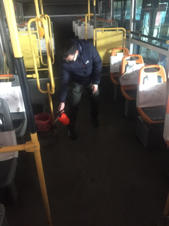 這群公交人是調(diào)度員、是例保員、是修理工、是保潔員,他們都是公交行業(yè)中平凡的一員,但是在疫情面前做著不平凡的工作。在公交停駛時(shí)間,他們默默堅(jiān)守著自己的崗位,奮戰(zhàn)在抗擊疫情的最前線。調(diào)度員每日堅(jiān)守在調(diào)度室,解答過往乘客的問詢,還承擔(dān)起對(duì)調(diào)度室和駕駛員休息室每日進(jìn)消毒工作。例保員每天到崗檢查停駛車輛狀況,完成對(duì)停駛車輛的能源補(bǔ)給,做好車輛養(yǎng)護(hù)工作,保證車輛能夠隨時(shí)上線營運(yùn)。保潔人員定期對(duì)車輛進(jìn)行清潔和消毒工作,保證車內(nèi)外衛(wèi)生。修理工則利用車輛停駛的這段時(shí)間,加班加點(diǎn)對(duì)故障車輛進(jìn)行維修維護(hù)。